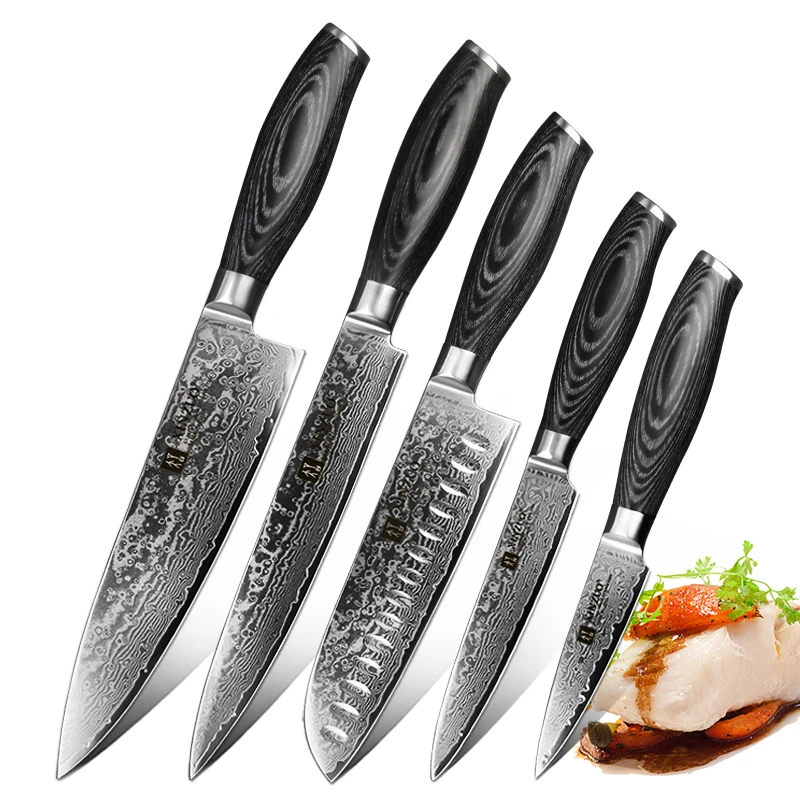 TOP XINZUO 5 PCS Kitchen Knives Set 67 Layers VG 10 Japan Damascus Steel Chef Cleaver Santoku Utility P